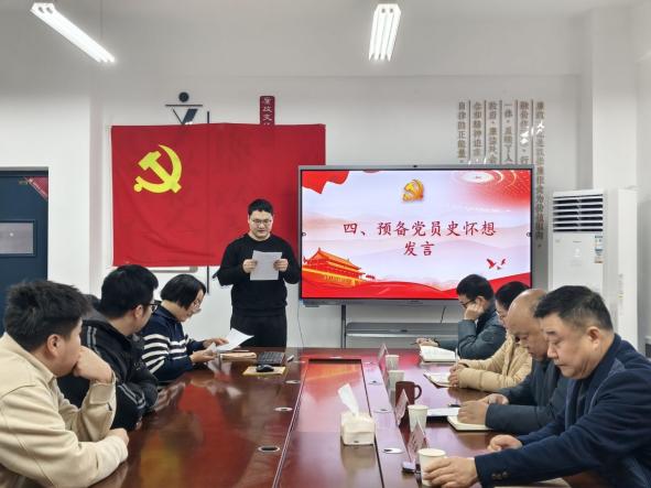 随后,由院党委副书记殷婷婷领誓,新发展党员面向党旗庄严宣誓,铿锵有力的誓言回荡全场,充分展现了新党员加入党组织的坚定决心与崇高追求。宣誓完毕,史怀想代表新党员发言。他满怀激动地向党组织及关心帮助自己的同志们致谢,分享了从递交入党申请书到成为预备党员的思想成长历程,并作出郑重承诺:今后将筑牢信仰根基,做政治上的明白人,始终同党中央保持高度一致;锤炼专业本领,做实干笃行的求知者,为服务社会打下坚实基础;勇担时代使命,做开拓进取的创新者,力争在专业领域有所贡献;践行根本宗旨,做默默奉献的服务者,把个人追求融入国家发展与人民需要之中。同时,他也清醒认识到自身不足,表示将虚心接受党组织和同志们的指导帮助,积极接受组织考验,早日成为合格共产党员。