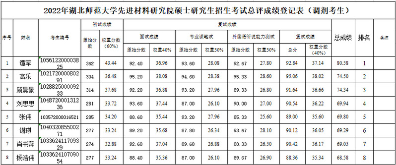 附件:2022年先进材料研究院硕士研究生招生考试总评成绩登记表