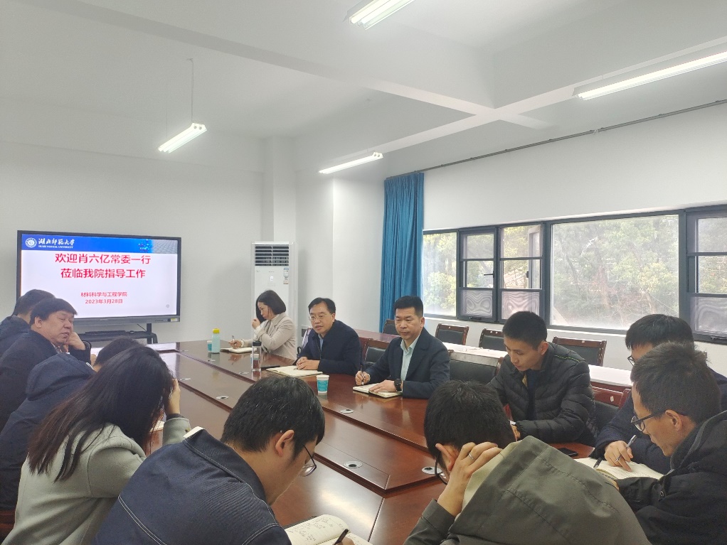 2023年3月28日上午,校党委常委、统战部长肖六亿,人事处副处长胡红贵、胡燕生一行莅临yl6809永利集团调研指导人才引进、培养与服务工作。yl6809永利集团院长王秀章、副院长杨伦以及部分青年教师代表参加座谈会。