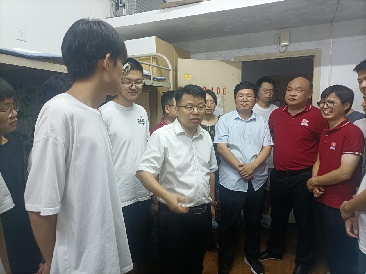 学院领导、班主任、辅导员老师和新同学们进行了亲切交谈,询问了同学们的个人情况、宿舍生活和校园适应状况。刘飞走访研究生宿舍时,嘱咐新生要尽快完成自己的身份转变,适应新的学习和生活节奏,表示研究生与本科生不一样,并以研三学长为例,讲述许多暑假留校战高温冒酷暑、埋头搞科研的典型案例,鼓励同学们一定要锚定方向,加倍努力,争取早日发表优秀的学术论文。