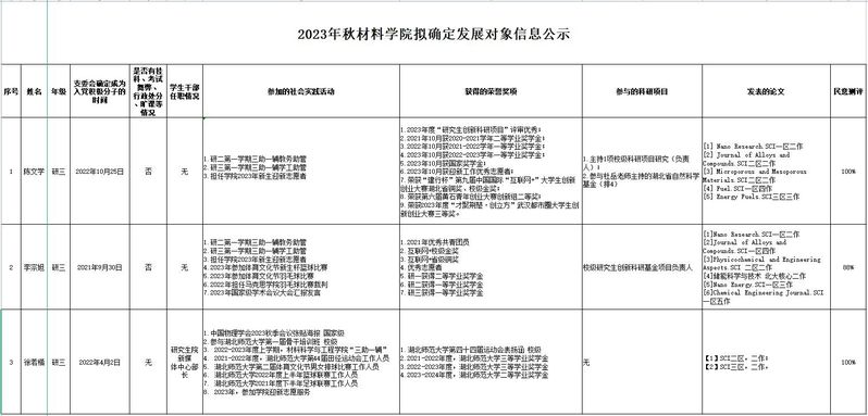 经支部委员会讨论,拟确定陈文学等3名同志为发展对象。根据发展党员工作有关要求,现将其有关情况公示如下:
