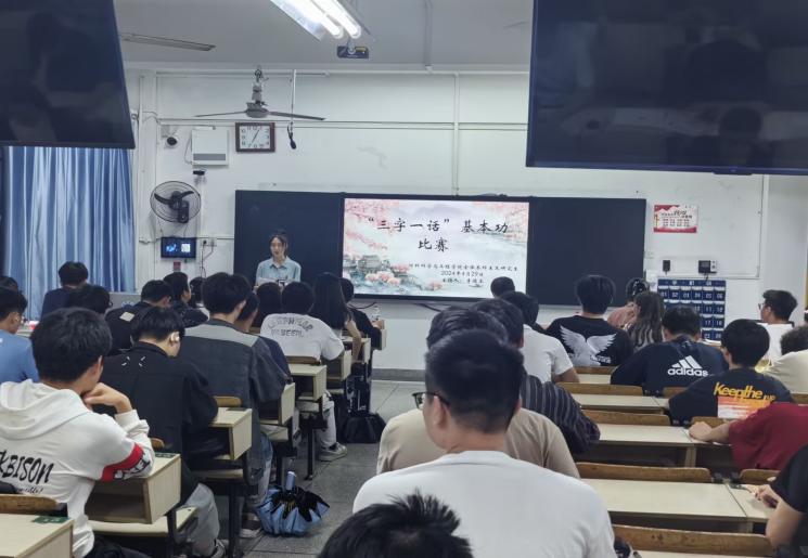 随后,杨伦副院长对比赛进行总结发言。他指出了举办本次比赛的重要意义,肯定了学院对学生综合素质能力培养的高度重视。最后,他再次强调了“三字一话”基本功在社会上的重要作用,明确指出即便是一个理工专业,也要重视文学素养的学习提升,鼓励同学们今后要多品读经典,推动文学创新,丰富文化生活,不断提升自我。