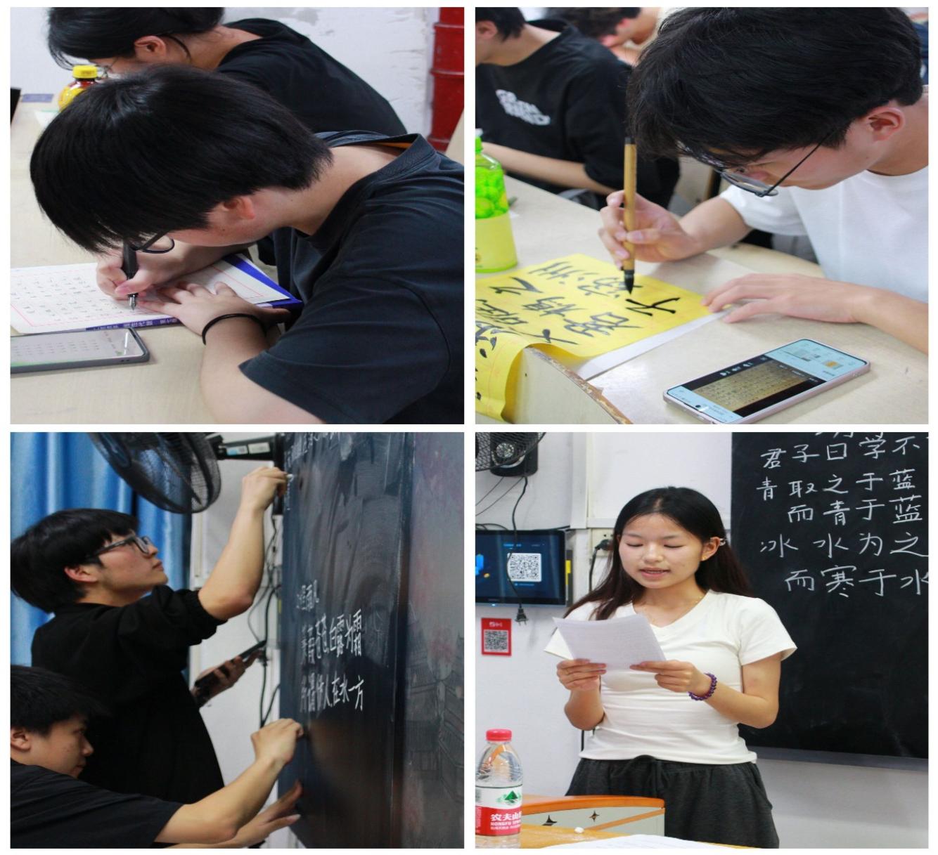 比赛内容分为粉笔字、钢笔字、毛笔字和普通话朗诵四个项目,共有58人次报名参赛。比赛过程中,参加“三字”比赛选手们在书法纸和黑板上书写意中华诗词,他们全神贯注,一笔一划精心书写,或提按分明、或遒劲有力、或清秀工整、或宛转隽永;字迹或工整清秀,或苍劲有力;参加普通话比赛的选手们以“弘扬教育精神,争做时代先生”为主题展开演讲,他们精心准备,热情饱满,声情并茂,用真挚的情感打动了在场的评委和观众,赢得了阵阵掌声。经过激烈角逐,4名选手获得一等奖,9名选手获得二等奖,11名选手获得三等奖。