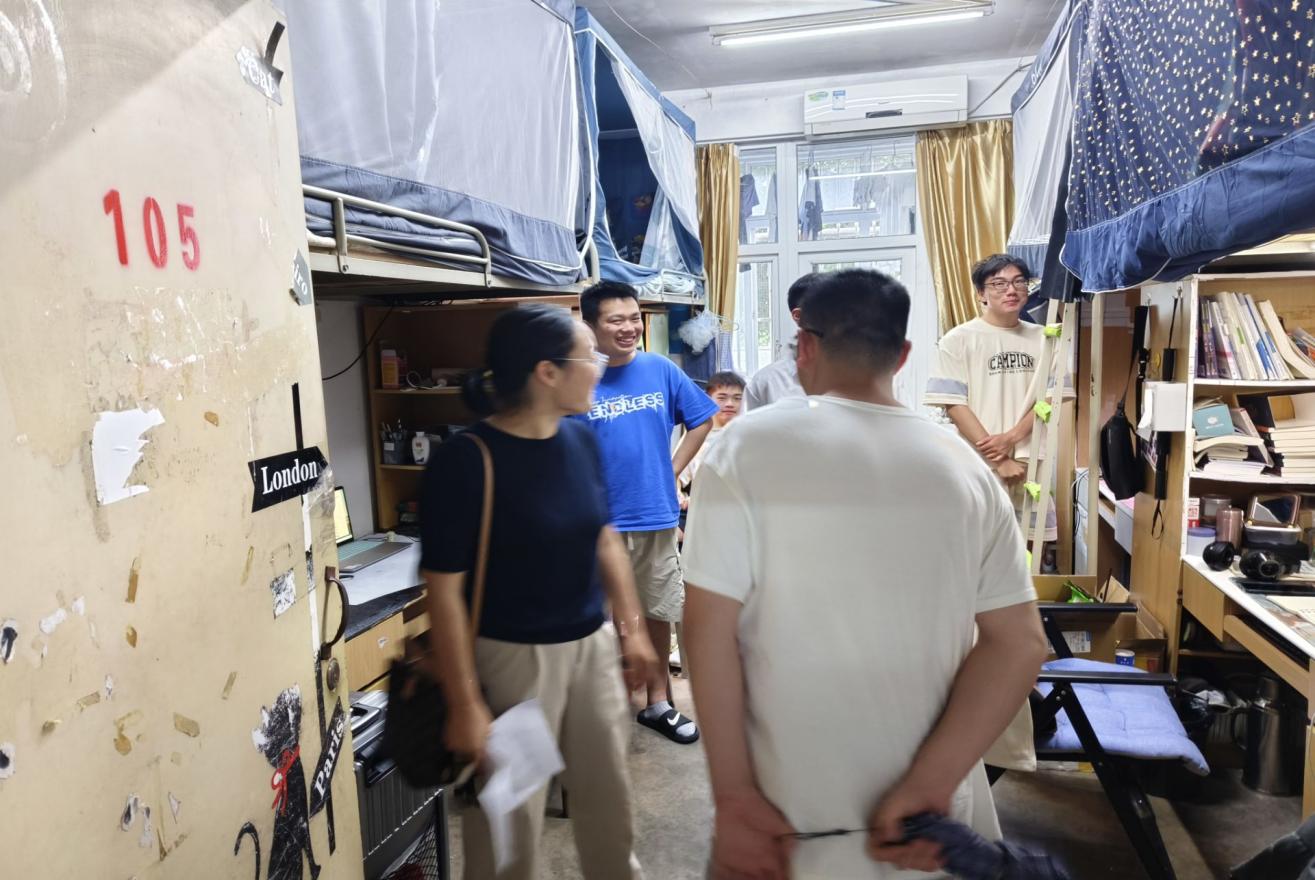 为落实立德树人的根本任务,着力构建全员育人、全过程育人、全方位育人的工作格局,扎实推进领导干部深入基层联系学生工作,2024年5月23日中午,科学研究发展院院长刘建民、副院长高红亮,以及yl6809永利集团领导班子、班主任、辅导员一行,深入对接楼栋23栋开展学生宿舍走访活动。此次走访旨在通过深入基层走访,面对面与学生进行对接交流,掌握学生思想动态、学习工作、日常生活等方面情况,切实了解学生们的“急难愁盼”,同时对学生宿舍进行常态化安全大检查,将严格管理和思想教育相结合,引导学生培育优良学风、规范宿舍行为、倡导健康生活,营造文明、安全、和谐的宿舍氛围。