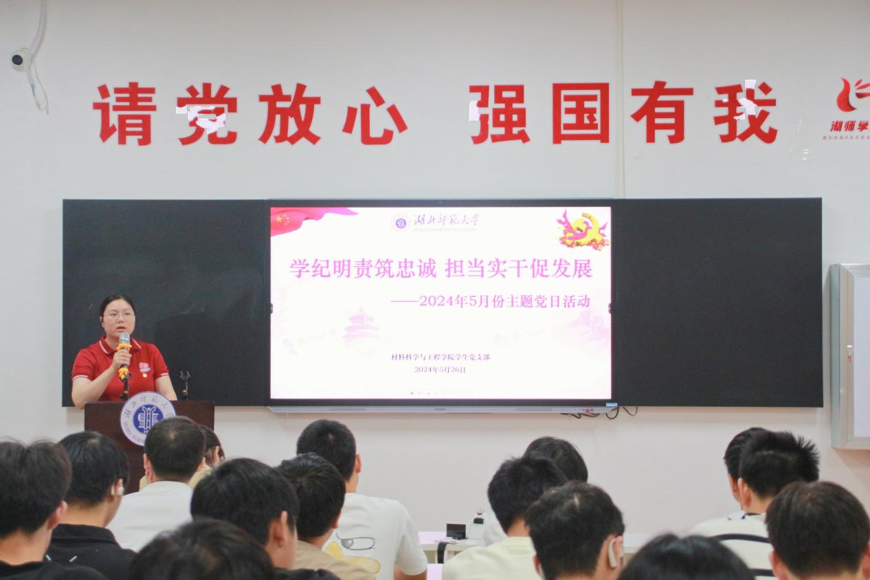 5月26日晚,yl6809永利集团学生党支部在至诚一站式学生社区组织开展“学纪明责筑忠诚,担当实干促发展”主题党日活动。活动由学生党支部书记熊峰同志主持,支部全体党员、入党积极分子和全体本科生参加。