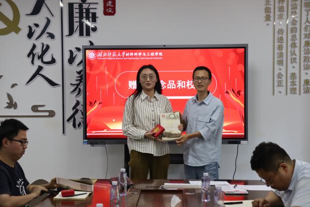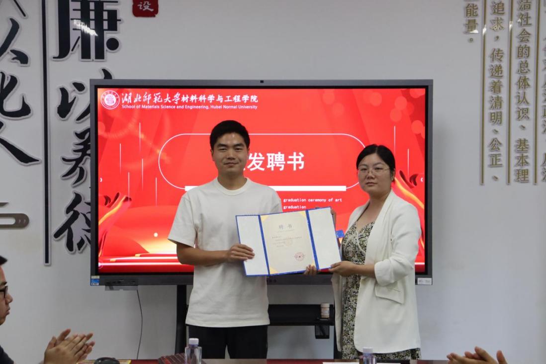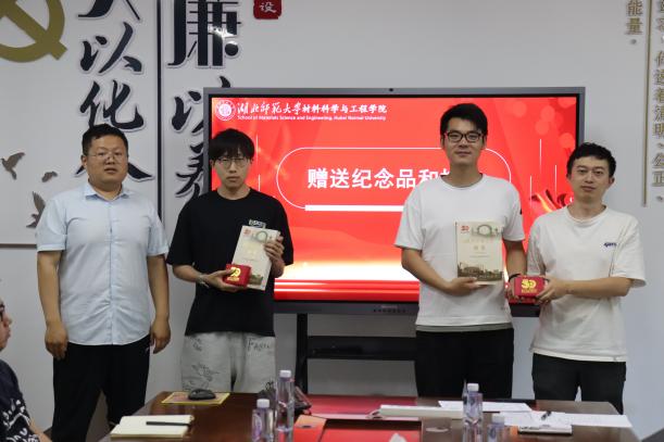 党委副书记殷婷婷为校友联络员吴传奇颁发了聘书。吴传奇同学表示,将认真履行校友联络员的职责,积极搭建校友与学院之间的桥梁,为学院的发展贡献自己的力量。紧接着,导师们为毕业生们赠送了纪念品和校史书籍,希望他们进一步感悟校史底蕴,增强爱校荣校情怀。