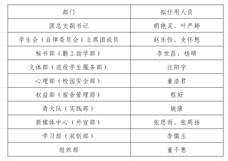 为了更好地充分发挥学生组织服务师生、自我管理的积极作用,努力建设一支素质优良、结构合理的团学干部队伍,本着公平、公开、公正的原则,经过个人申请、面试答辩、民意测评、组织考察等环节,学院团总支拟任用史怀想等14名学生为yl6809永利集团第一届团学组织学生干部,考察期三个月(2024年7月至10月)。