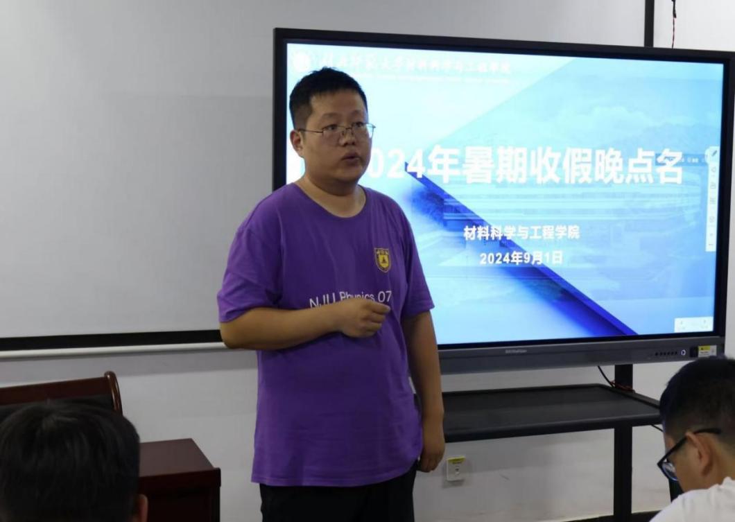 最后,学院领导亲自进行假期收心教育和新学期学习动员。党委副书记殷婷婷在讲话中强调,站在新学期、新起点,同学们要有高度的责任感和紧迫感,通过调整心理状态、强化自我管理、树立明确目标等方式,迅速从轻松、惬意的暑期状态调整到新学期紧张而又充实的学习状态中去。她还鼓励同学们,以饱满的热情、昂扬的斗志和扎实的作风,开启新征程、书写新篇章。副院长杨伦则针对本科生和研究生分别提出了具体要求。他要求本科生要更加重视学业成绩,珍惜学习时光;同时,也提醒同学们要注意实验室安全,确保实验活动的顺利进行。他鼓励研究生要深耕各自的科研领域,大胆开拓创新,不断提升自己的科研能力。