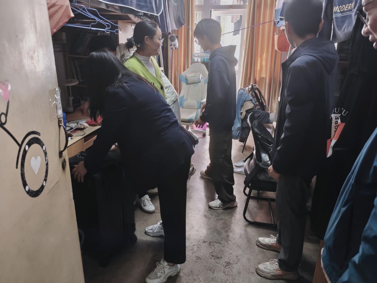 为进一步推进文明宿舍创建,改善宿舍卫生环境,规范学生日常行为,10月24日中午,yl6809永利集团党委副书记殷婷婷,班主任熊东彬、马祯,辅导员林静及全体学生干部,深入学院30间学生宿舍,排查安全隐患,检查内务环境及宿舍文化建设情况。