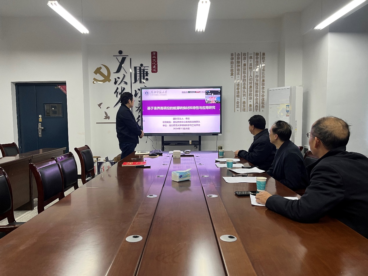 2024年11月28日上午, 学院在产教融合中心24424会议室成功组织召开了湖北省教育厅科学研究计划项目结项评审会。此次评审的项目类型是“高校优秀中青年科技创新团队”,项目题目是“基于表界面调控的能源转换材料特性与应用研究”,团队带头人是杨伦副教授,主要完成人包括:杨伦、刘红日、谢云龙、潘其云、刘易斯、杜岳、王赛玉、王秀章、刘美风、张勇军、李中。