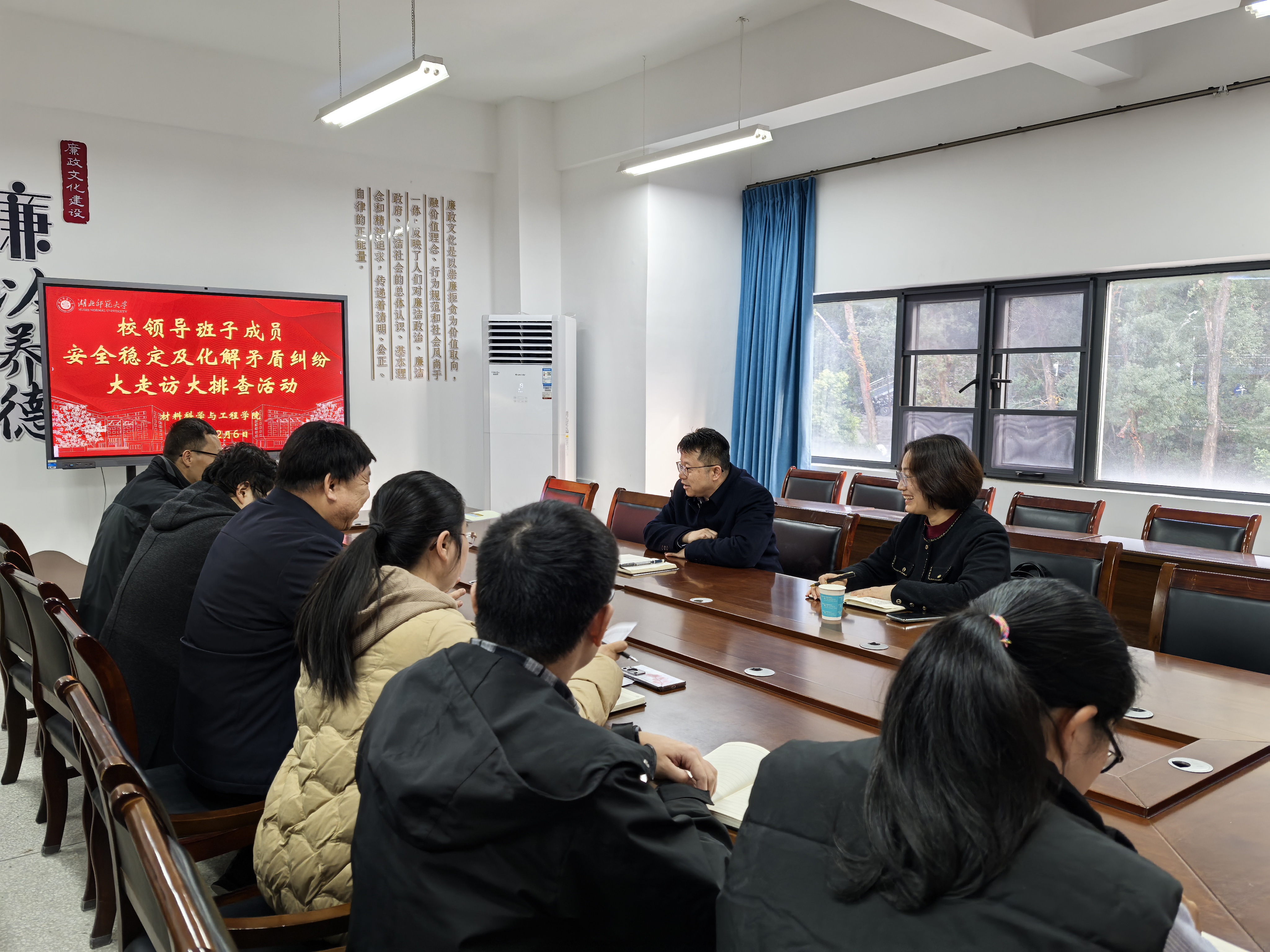 调研交流中,学院领导成员就分管工作中安全稳定工作开展情况、问题隐患及针对性研判、整改措施进行了简要汇报。师生代表对日常学习、工作、生活中存在的困难进行了交流反馈。