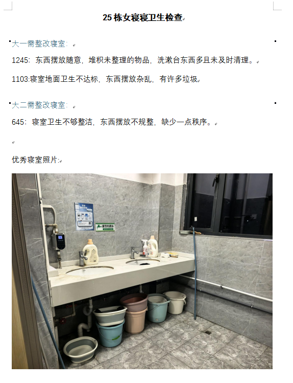 1127日晚,学院自律委员会宿舍管理部积极响应学校号召,在常规查寝活动的同时,对阳台废弃易燃物品进行了全面而细致的自查。随后,将检查结果及时通报,并针对存在安全隐患的宿舍提出了明确的整改要求,确保每一项安全隐患都能得到及时有效的处理。