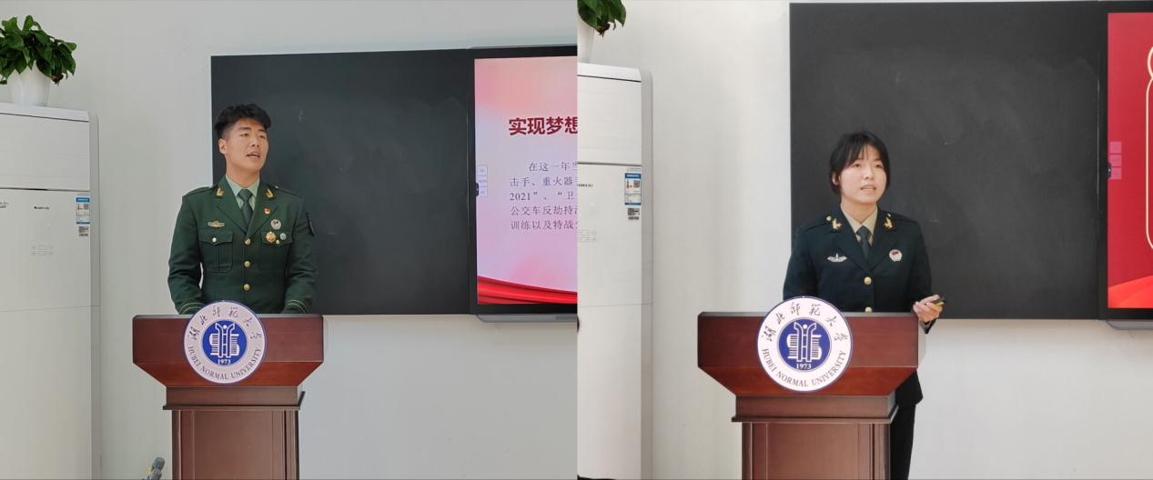 活动伊始,两位退伍学生代表李希研和薛新怡先后上台,用生动的语言和真挚的情感分享了他们的军旅故事。通过展示一系列军旅生活的照片,他们向在场的学生展示了军营生活的艰辛与荣耀,以及军营对个人成长和发展的深远影响。他们的分享不仅让同学们对军营生活有了更直观的了解,更激发了大家投身军营、报效祖国的热情。