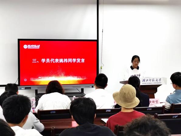 开班仪式在庄严激昂的国歌声中正式拉开帷幕。随后,培训班班主任林静宣读了培训工作安排与具体要求,着重强调了学习纪律以及考核安排等关键事项,让学员们对培训的整体框架和要求有了清晰的认识。材料学院2401班姚祎同学作为学员代表上台发言。她言语间满含热忱与决心,呼吁全体学员以党的信念为灯塔,以党的原则为标尺,坚定不移地追随党的步伐,矢志不渝地争取早日成为一名光荣的中国共产党党员,其发言激起了在场学员的强烈共鸣。
