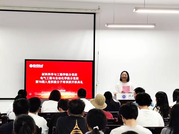 电气学院党委书记严海燕致辞中对学员提出三点期望:一是深化理论认知,了解党的基本路线、筑牢信仰之基;二是坚定理想信念,保持对党的绝对忠诚;三是严守纪律规范,以党员标准要求自己。希望各位学员通过不懈努力,早日站在鲜红的党旗之下,成为一名光荣的共产党员。