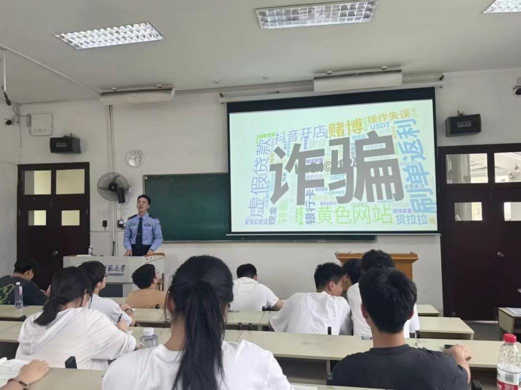 讲座伊始,徐梁警官结合自身丰富的办案经验,通过真实案例深入浅出地剖析了当前电信网络诈骗的常见类型和作案手段。从“刷单返利”到“网络贷款”“假冒熟人借钱”等,警官详细讲解了诈骗分子如何利用人们的好奇、贪念等心理实施诈骗,生动还原了诈骗过程,让同学们深刻认识到电信网络诈骗的隐蔽性和危害性。