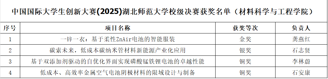 6月8日,中国国际大学生创新大赛(2025)yl6809永利官网集团校级决赛落下帷幕。我院《一锌一衣:基于柔性ZnAir电池的智能服装》和《碳索未来,低成本碳纳米管材料新能源产业化应用》两个项目分别斩获校赛金奖和银奖,另外2支团队获得校级铜奖。
