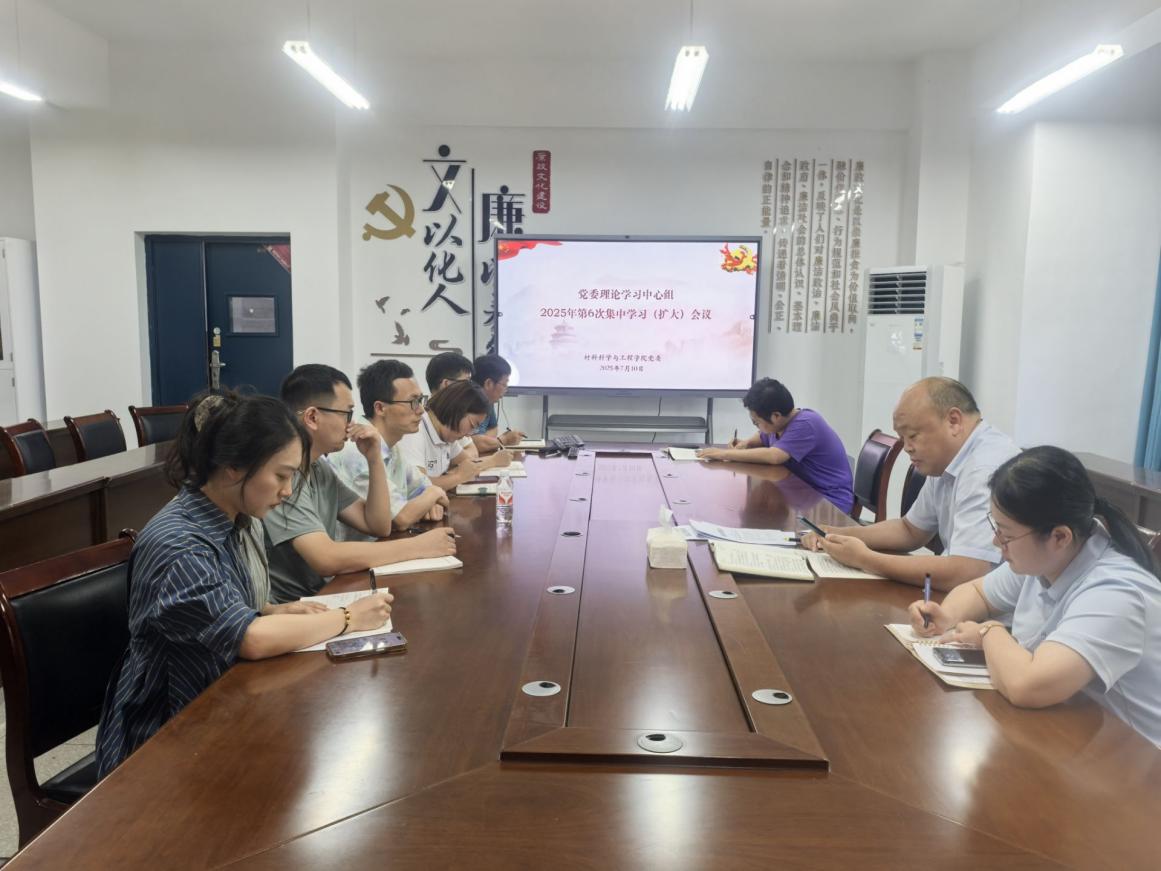 7月10日下午,院党委理论学习中心组召开2025年第6次集中学习(扩大)会议,重点围绕习近平总书记在中央政治局第二十一次集体学习时的重要讲话精神和中央八项规定精神开展专题学习,院党委书记刘飞主持并作讲话。全体院领导,党委理论学习中心组成员、各党支部书记参加会议。