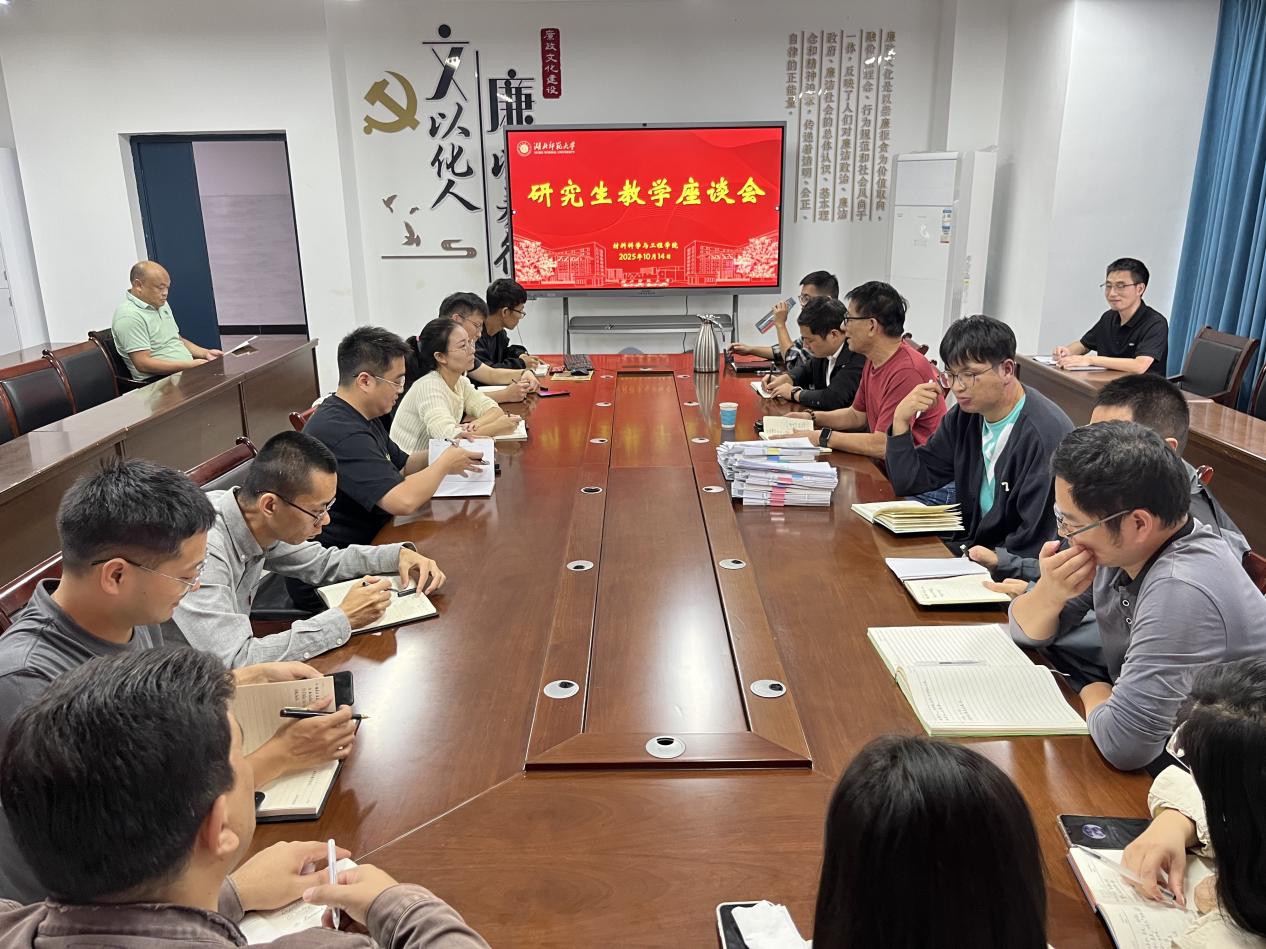 学院特别邀请校级教学督导余新武教授来院指导工作。学院领导、各系系主任、教学管理人员、全体研究生课程任课教师及硕士生导师参加了座谈会。