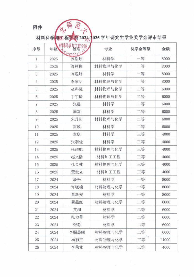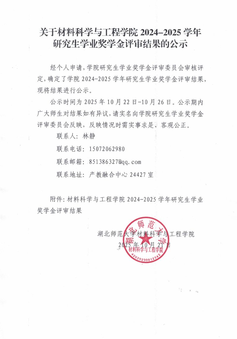 关于yl6809永利集团2024-2025学年研究生学业奖学金评审结果的公示
