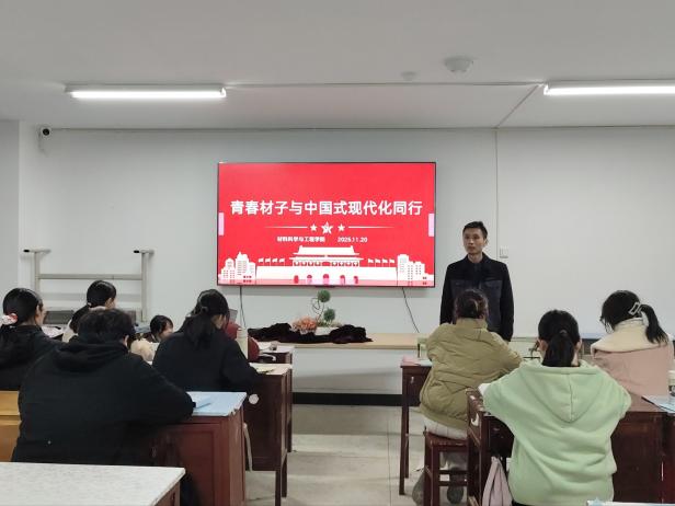为深入学习贯彻党的二十届四中全会精神,引导青年学子将个人成长与中国式现代化建设紧密结合,11月20日,我院以“青春材子与中国式现代化同行”为主题组织开展班会活动。各班级班主任到场参与,通过理论学习、互动讨论、思想碰撞等形式,让二十届四中全会精神入脑入心,推动材料学子明晰使命、勇担重任。