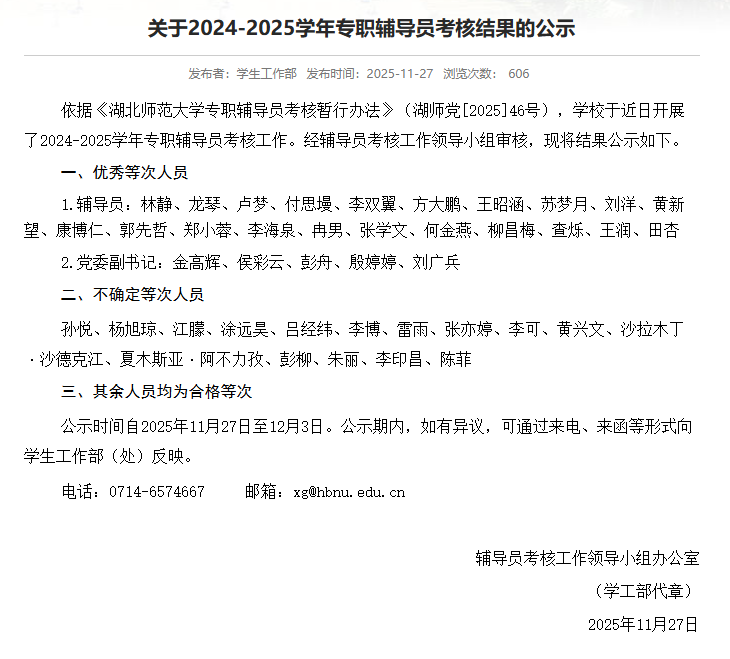 殷婷婷、林静老师获2024-2025学年专职辅导员考核优秀等次