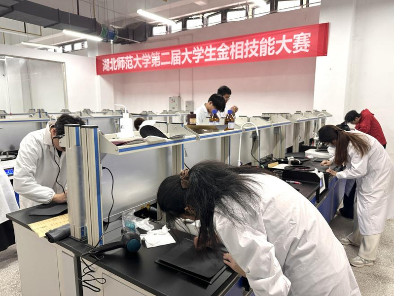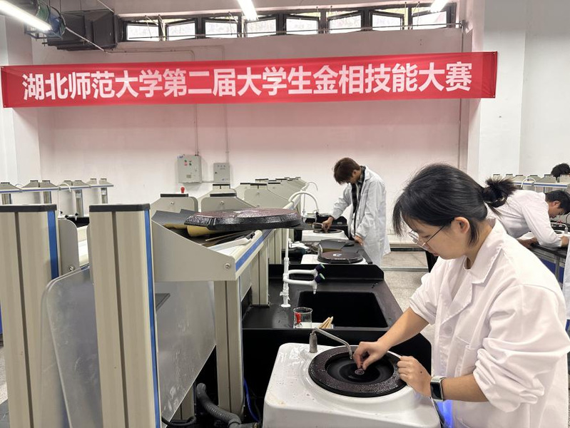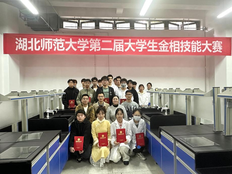 比赛现场,参赛学子沉着冷静、规范操作,展现出良好的专业素养。从试样磨抛的力度把控,到浸蚀时机的精准判断;从显微镜观察的细致调整,到整个操作流程的严谨规范,每一步操作、每一个细节,都彰显着同学们扎实的训练功底与严谨的科学态度,充分展现了湖师材料学子勤学苦练、精益求精的求学初心。